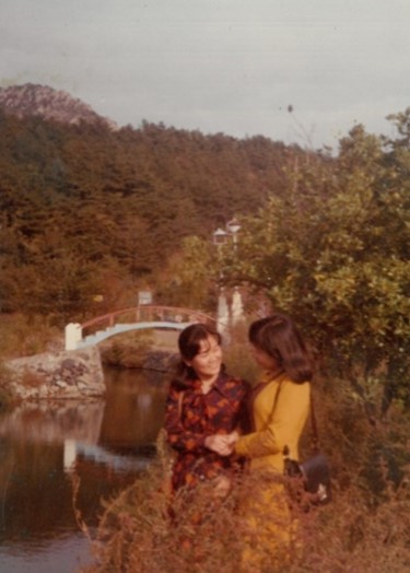 * 괴정에 신동교역이라고 큰 무역회사에 다닐 때인데, 회사 후배랑 고등학교 친구랑 모두 양장점에서 맞춘 옷을 나들이를 왔죠. 제가 입고 있는 노란색 옷은 제가 직접 다 디자인 한 거에요. 구두도 당시에 에스콰이어 같은 데서 맞춰서 신었고..