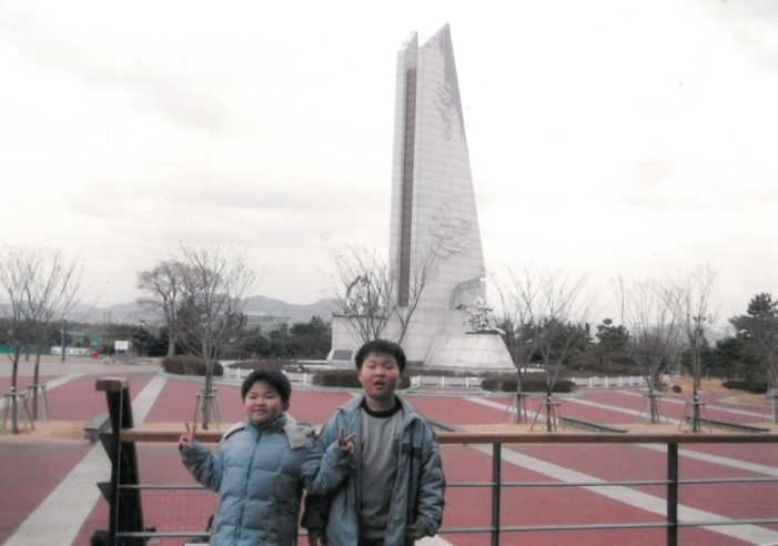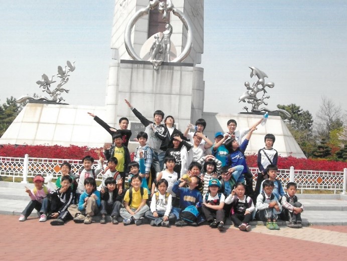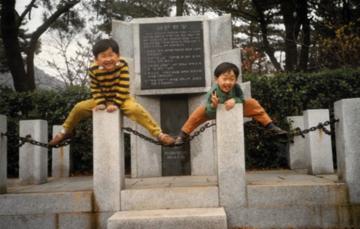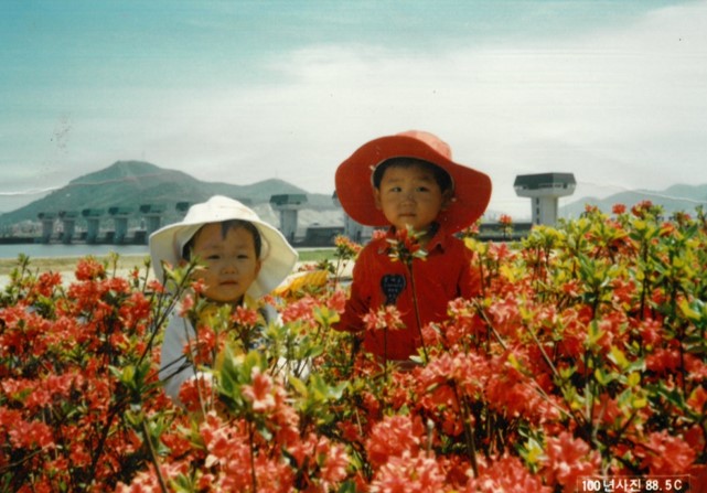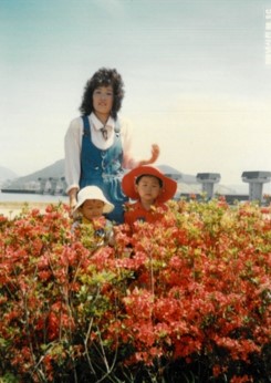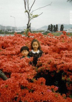 빨간 연산홍 꽃밭에서. 봄이면 아이들과 나들이 나와 사진 찍던 명소가 되어 주었다.